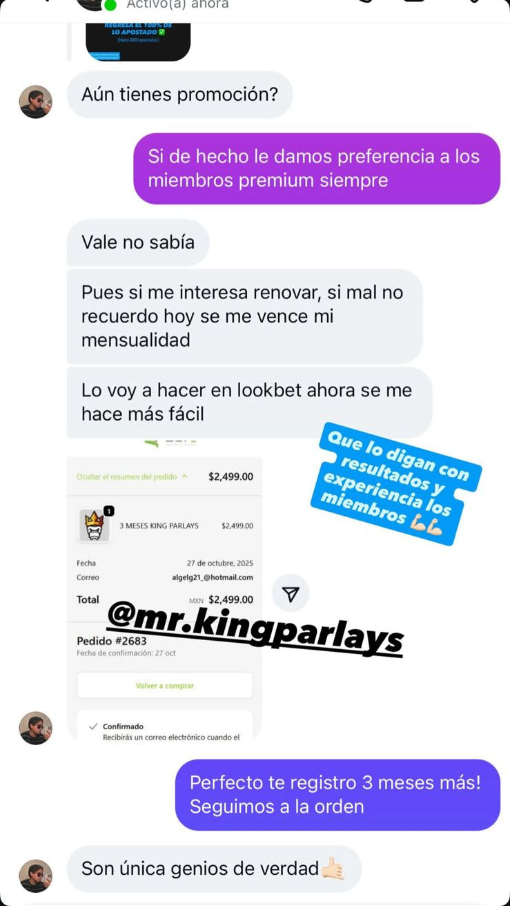 Una vez que realizas el pago a través de nuestra plataforma, todo se configura automáticamente en Lookbet. Sin embargo, si deseas acceder a los grupos de Telegram o WhatsApp, deberás enviar tu comprobante de pago a nuestras redes sociales vía WhatsApp o Lookbet.
