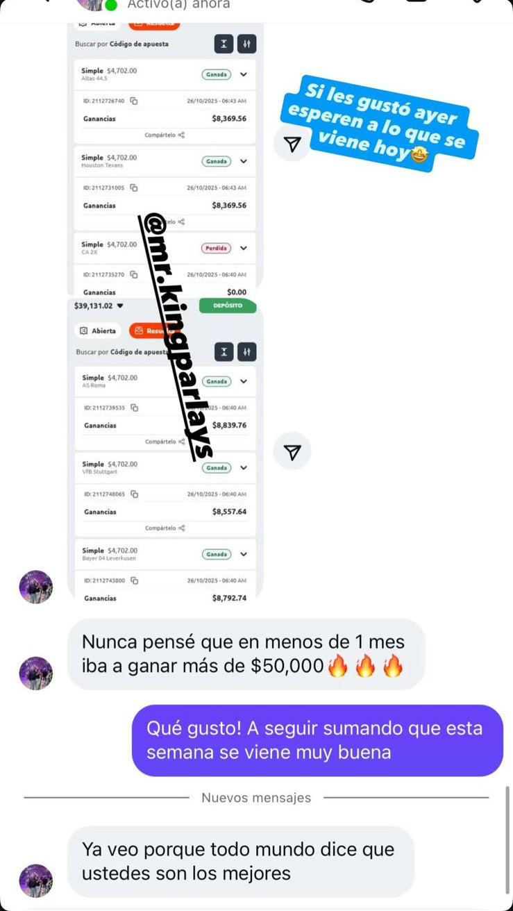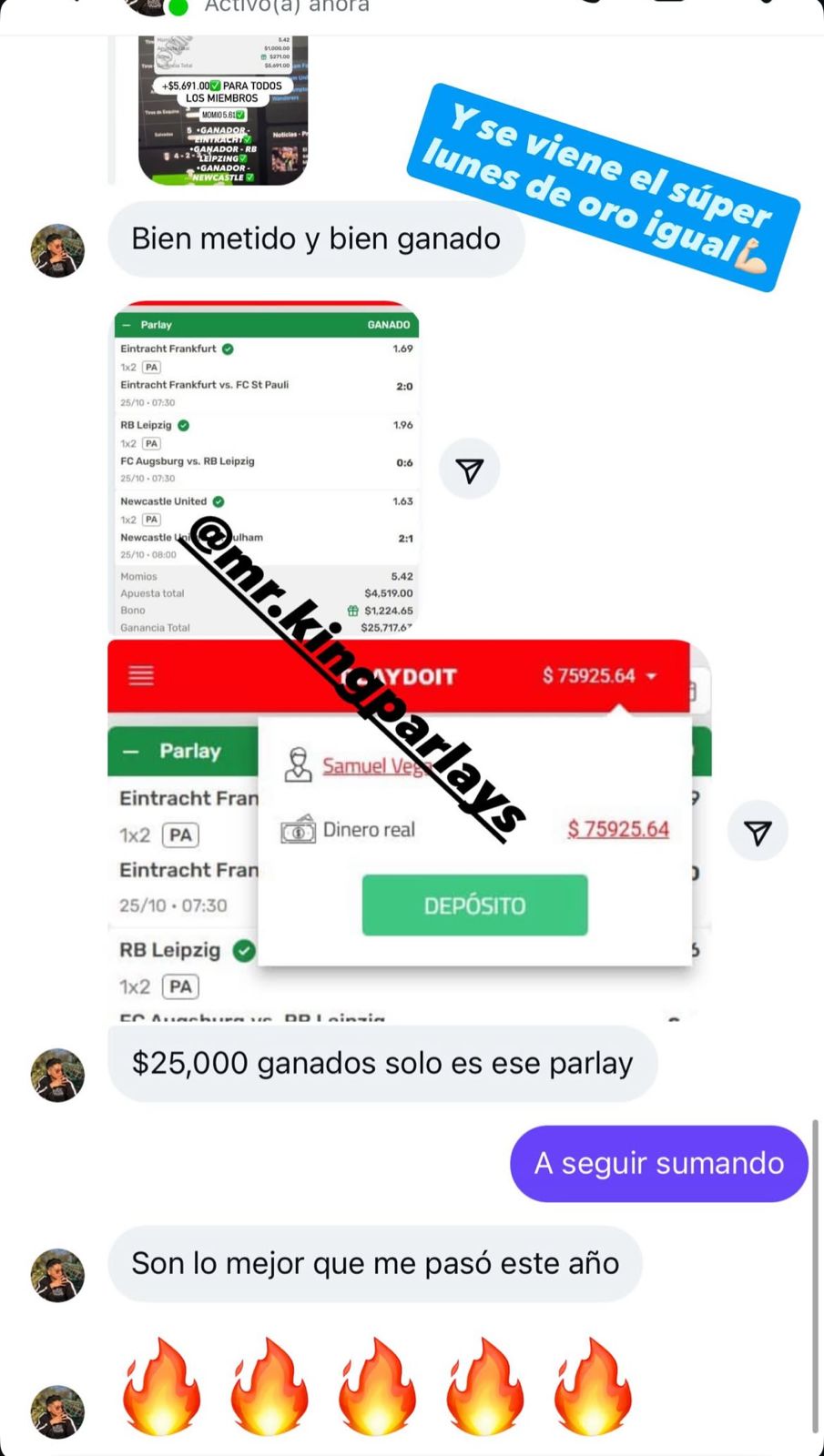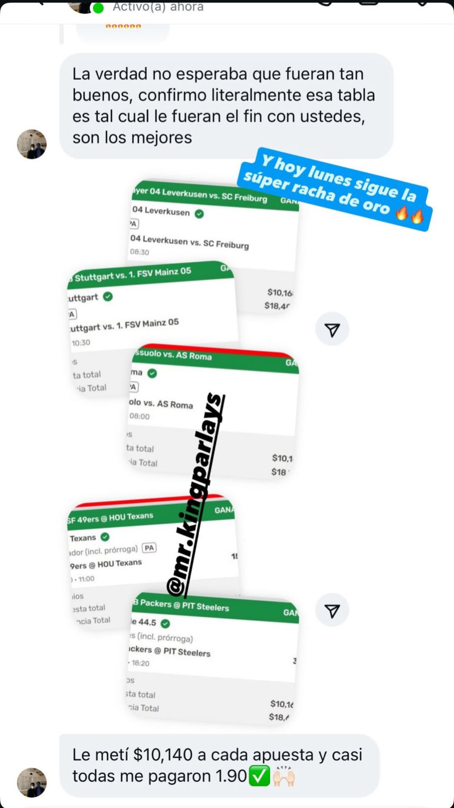 Una vez que realices el pago, los deportivos te serán enviadas automáticamente a través de la plataforma Lookbet. También tendrás acceso a un grupo donde están los demás participantes y recibirás una notificación en tu teléfono cuando se envíen las selecciones. Además, se te proporcionará el número de un asesor deportivo que te ayudará con cualquier duda que tengas. Puedes comunicarte con ellos vía WhatsApp o Telegram