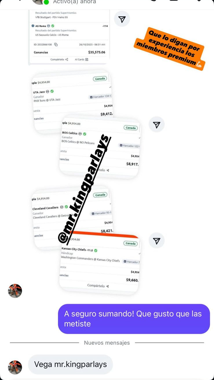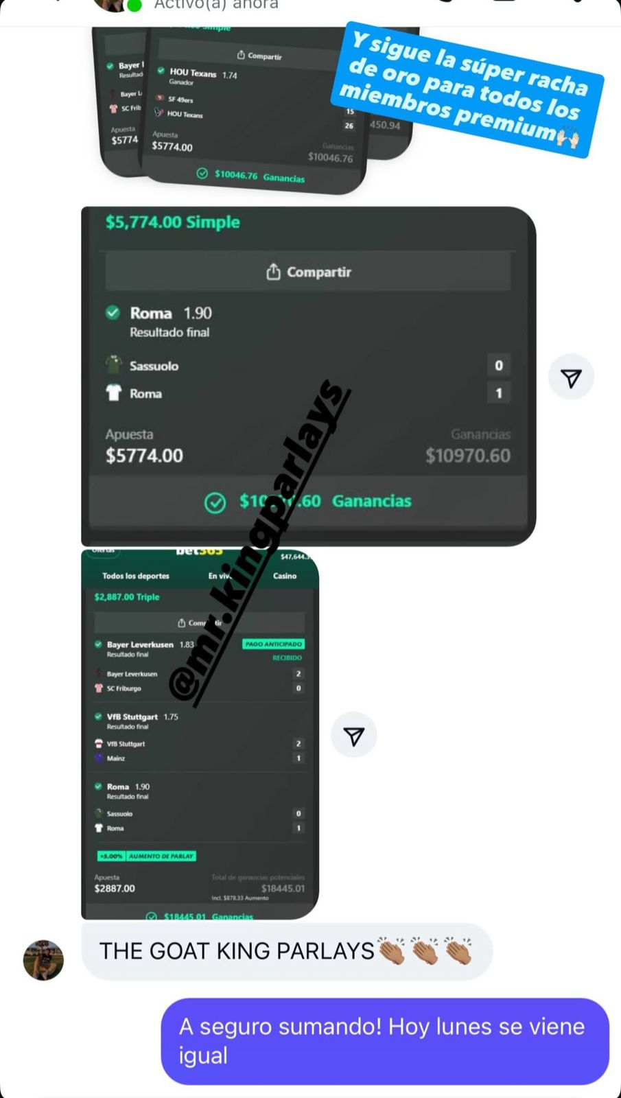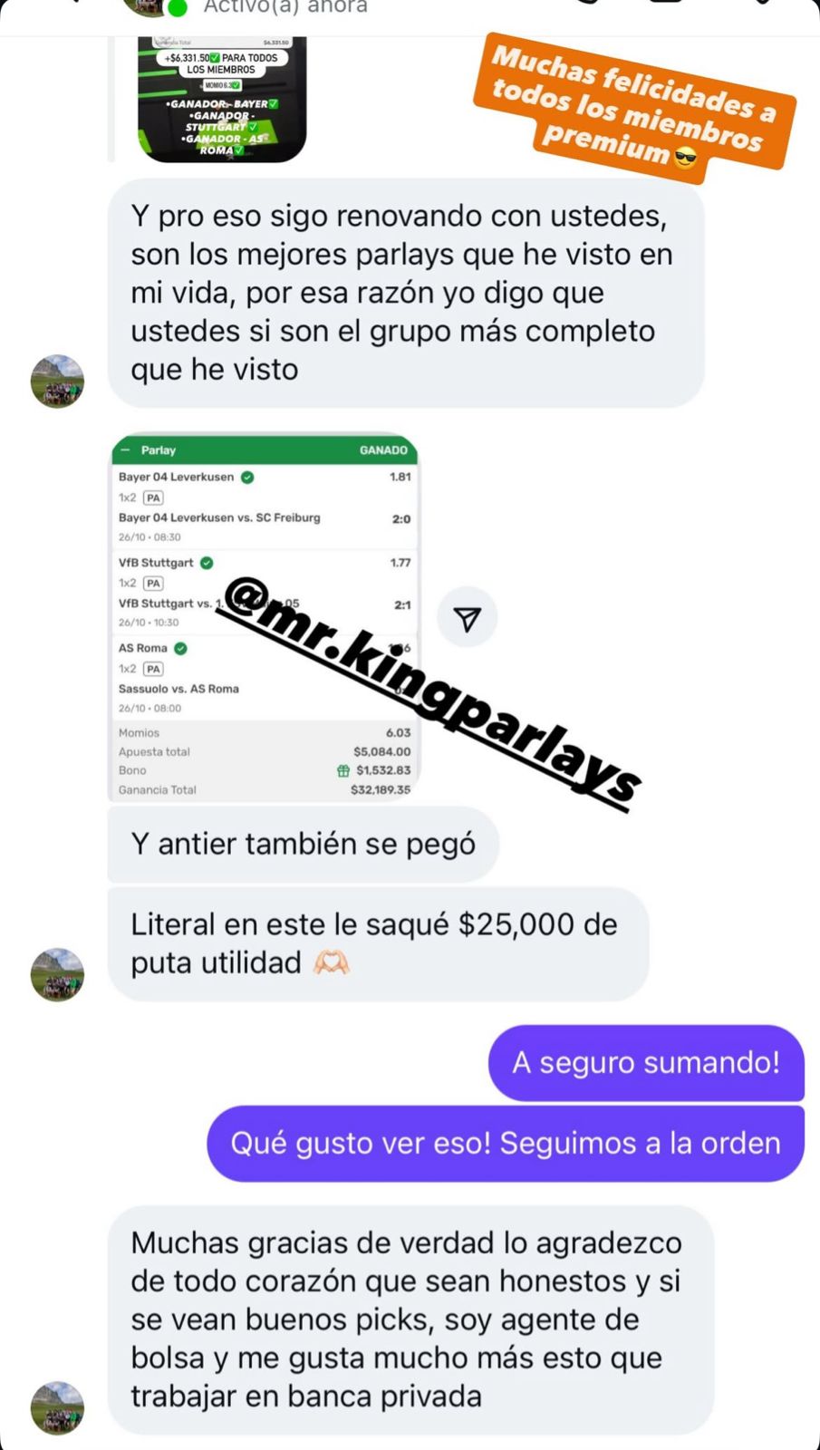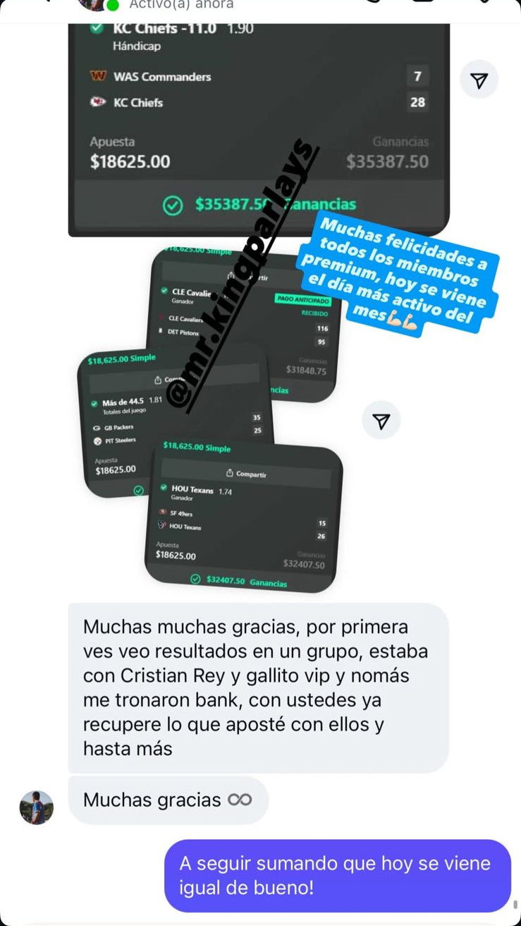 Una vez que realices el pago, los deportivos te serán enviadas automáticamente a través de la plataforma Lookbet. También tendrás acceso a un grupo donde están los demás participantes y recibirás una notificación en tu teléfono cuando se envíen las selecciones. Además, se te proporcionará el número de un asesor deportivo que te ayudará con cualquier duda que tengas. Puedes comunicarte con ellos vía WhatsApp o Telegram