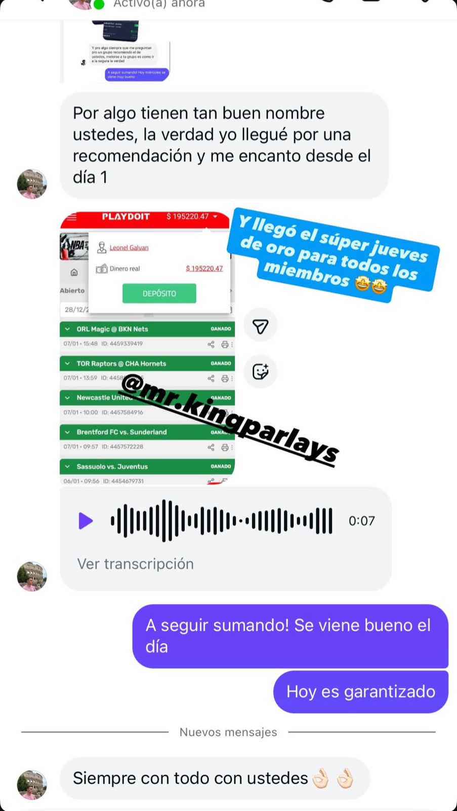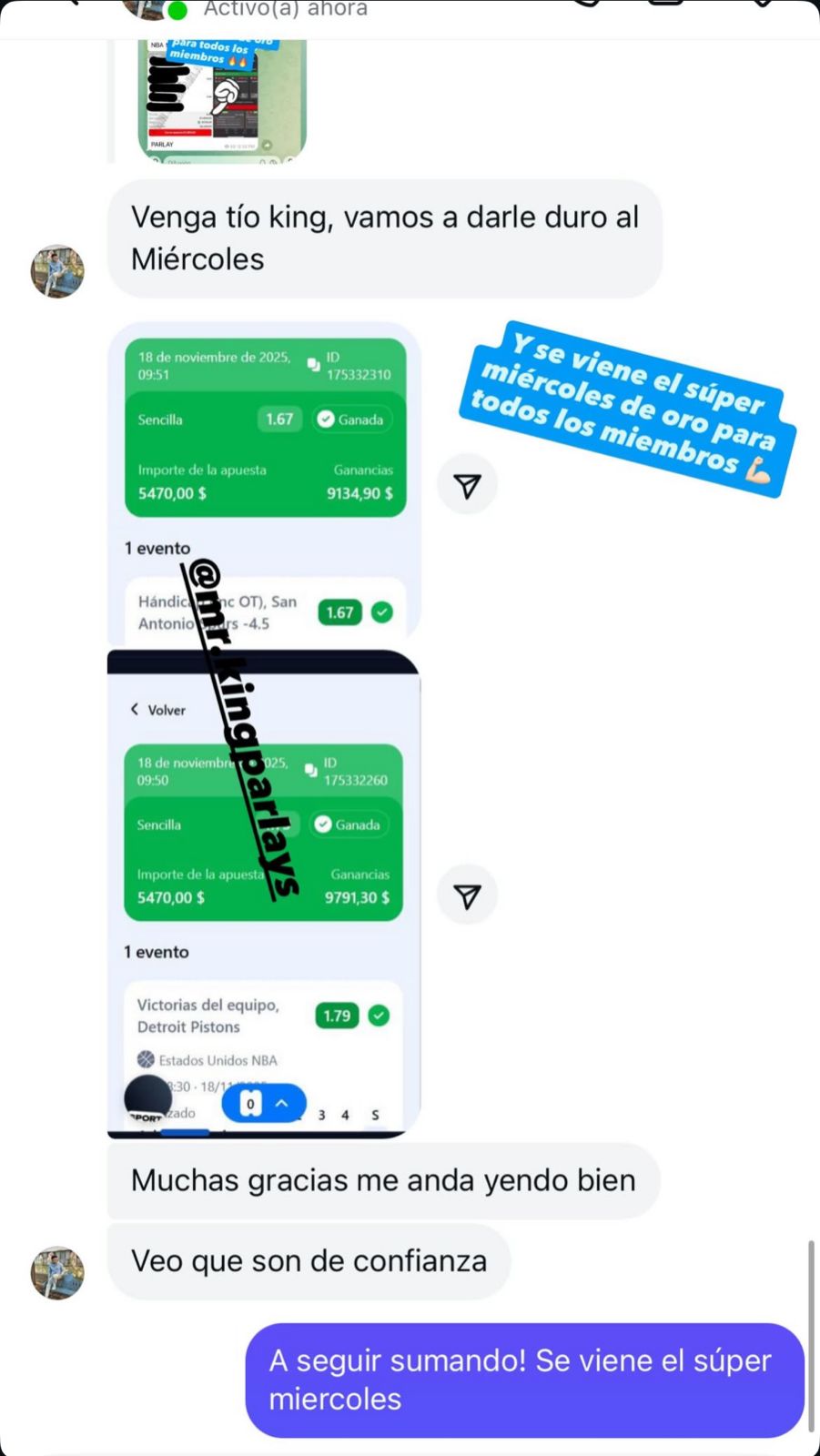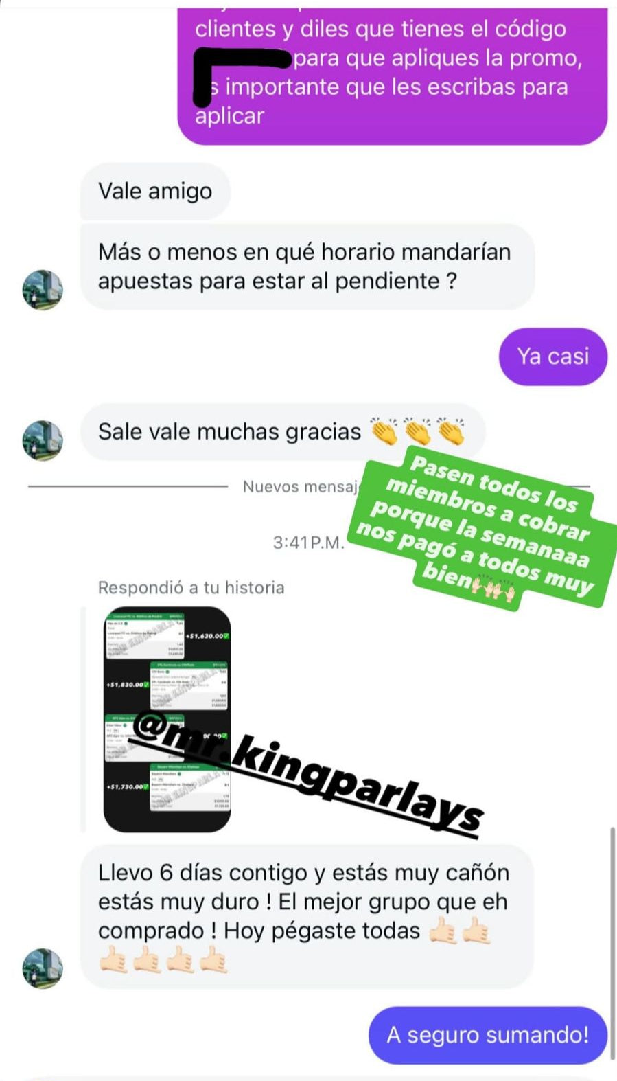 Una vez que realices el pago, los deportivos te serán enviadas automáticamente a través de la plataforma Lookbet. También tendrás acceso a un grupo donde están los demás participantes y recibirás una notificación en tu teléfono cuando se envíen las selecciones. Además, se te proporcionará el número de un asesor deportivo que te ayudará con cualquier duda que tengas. Puedes comunicarte con ellos vía WhatsApp o Telegram