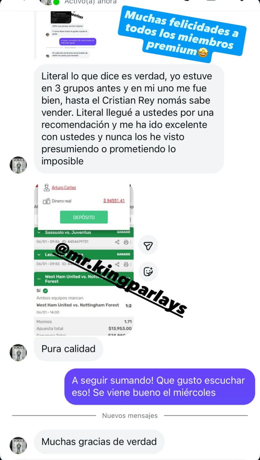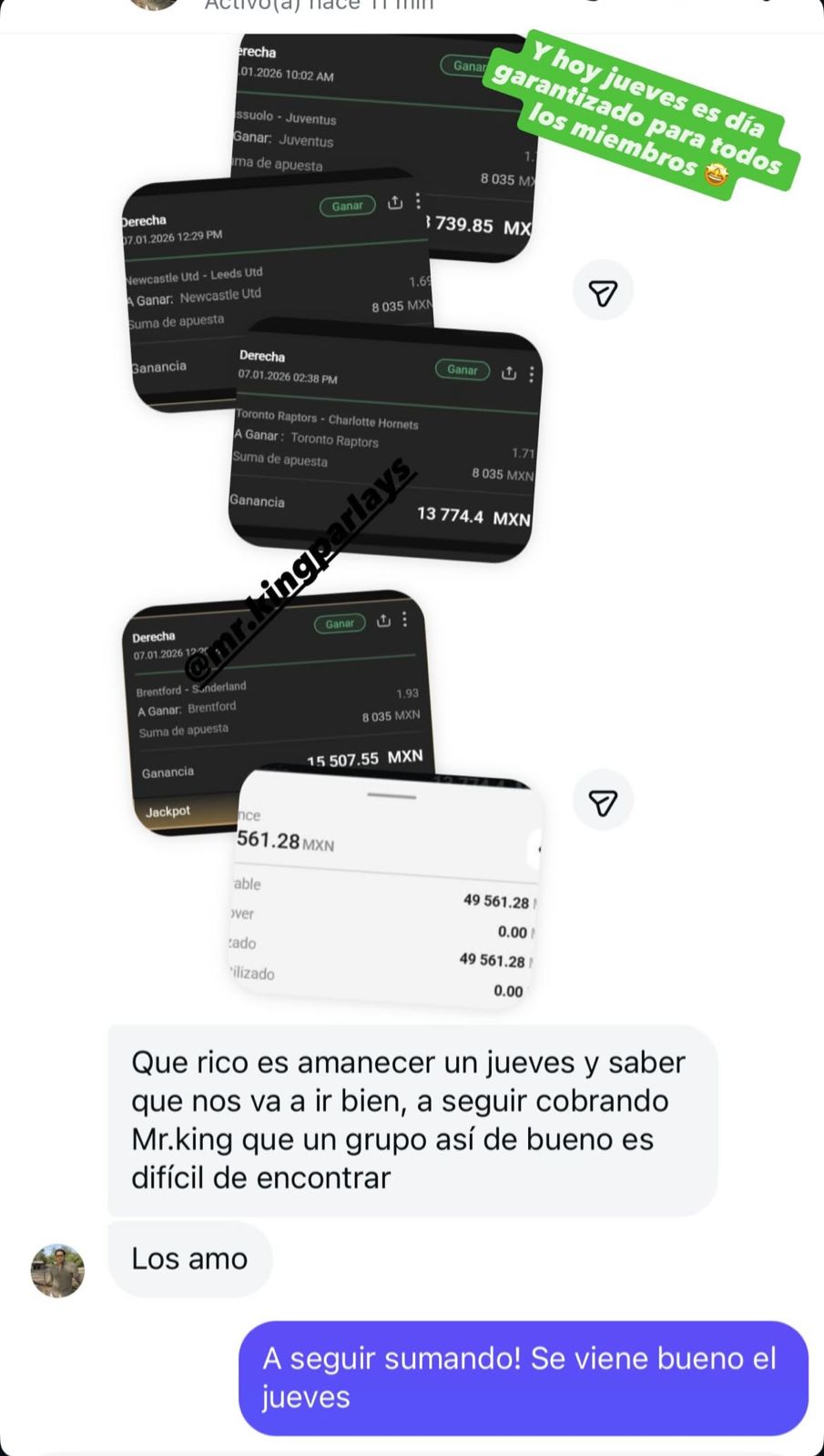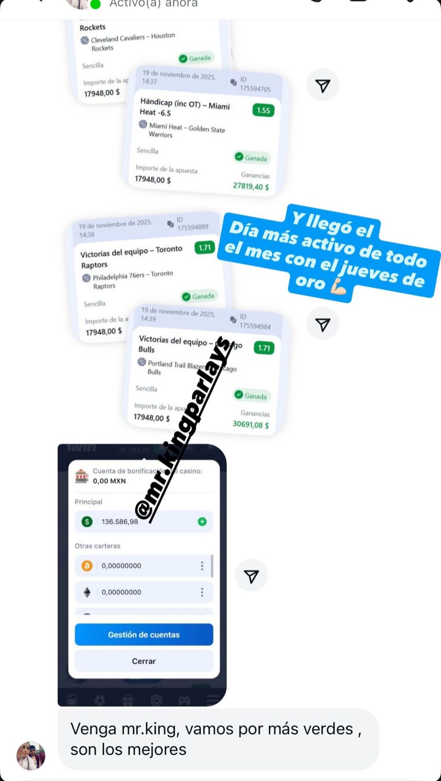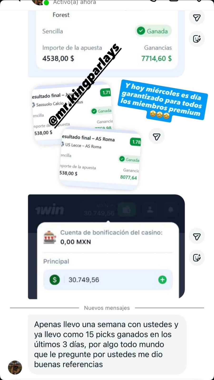 Una vez que realices el pago, los deportivos te serán enviadas automáticamente a través de la plataforma Lookbet. También tendrás acceso a un grupo donde están los demás participantes y recibirás una notificación en tu teléfono cuando se envíen las selecciones. Además, se te proporcionará el número de un asesor deportivo que te ayudará con cualquier duda que tengas. Puedes comunicarte con ellos vía WhatsApp o Telegram